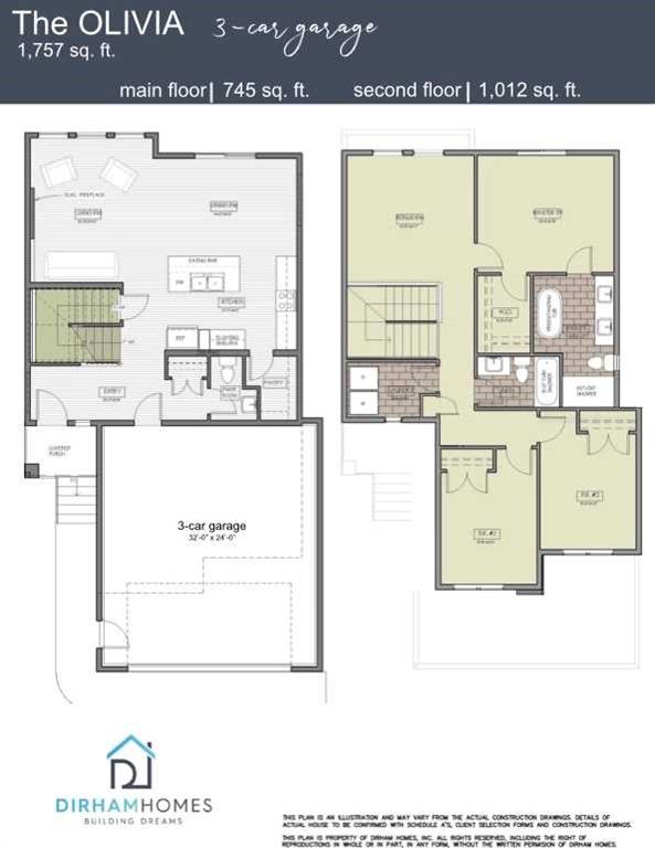 Dirham Homes Job #2502 - The Olivia 3 Car Garage - Step into luxury with this stunning brand new 2 storey home, featuring 3 spacious bedrooms, 2.5 bathrooms, and a thoughtfully designed layout that blends style and functionality. The main floor boasts an open concept living space, perfect for family gatherings or entertaining. The modern kitchen features sleek quartz countertops, ample storage with a walk in pantry, and lovely two toned cabinetry flowing seamlessly into the bright dining and living areas co...