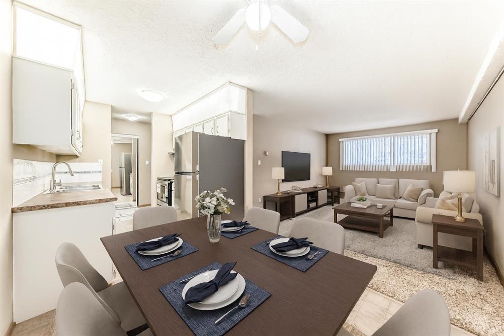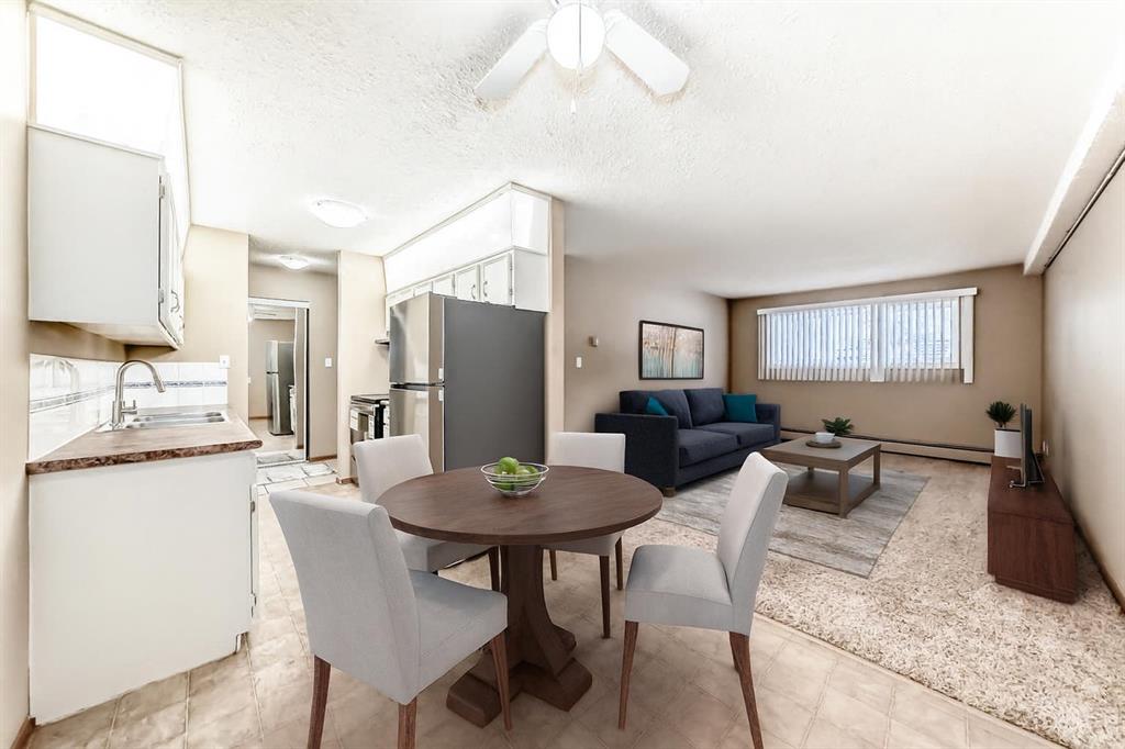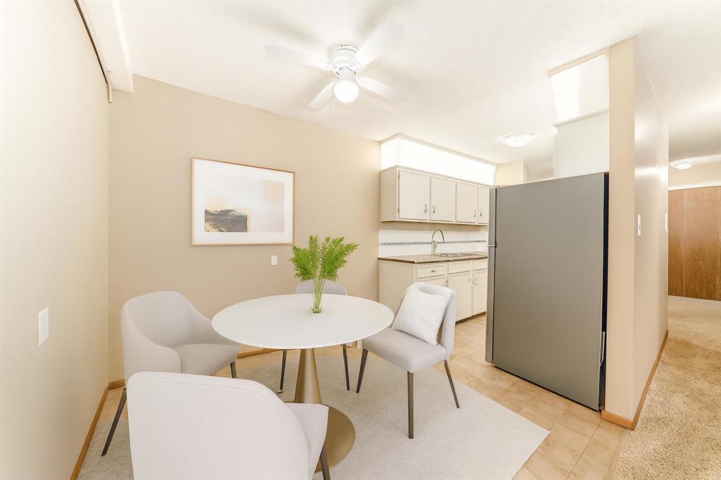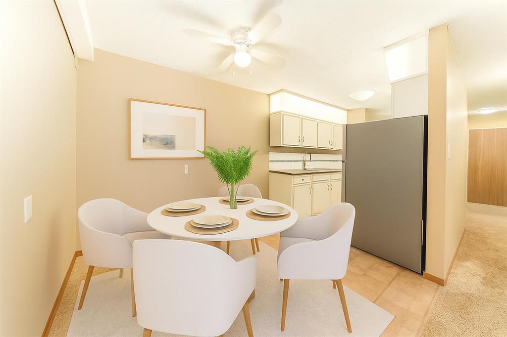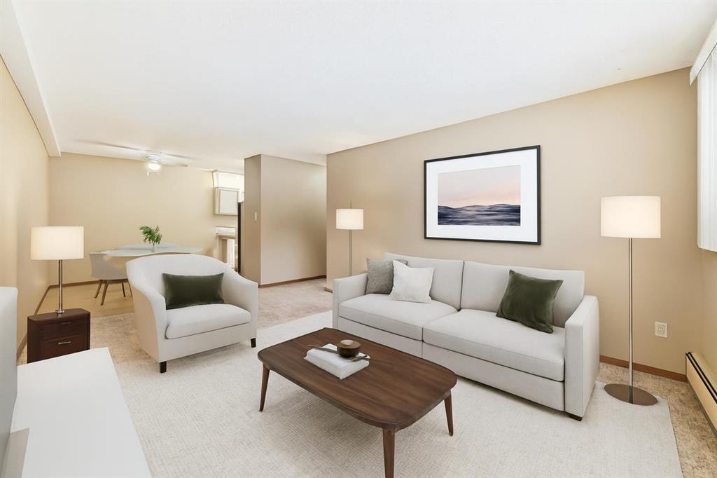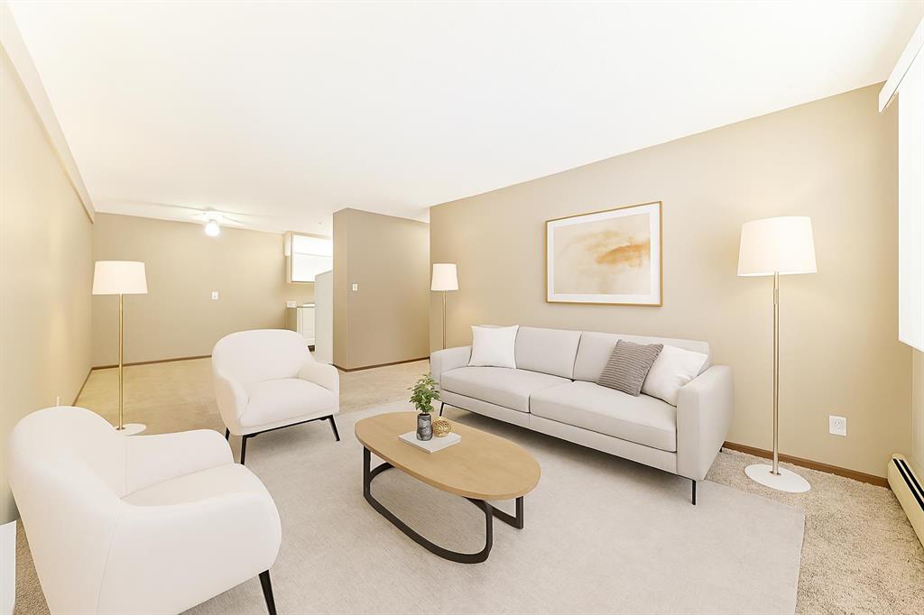 Great shape 2 bedroom unit. Numerous improvements over the years and shows very well. 2 bedrooms with double mirrored closet door in spacious primary bedroom ,upgraded dome light fixtures with LED bulbs, freshly steam cleaned carpet in Living room and bedrooms, lino in KI/DI, ceramic tiles in Entrance area with mirrored closet doors. The full 4 Pce Bathroom has ceramic floor tiles, Bath tub has ceramic tiles and shower doors, ceramic sink, large mirror and built in medicine cabinet. Kitchen has lots of c...