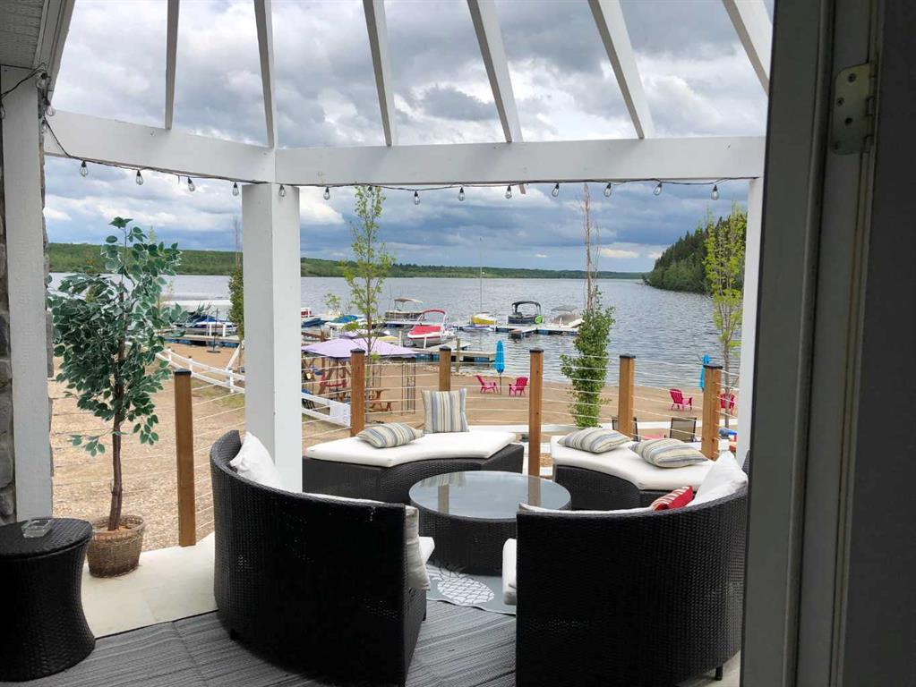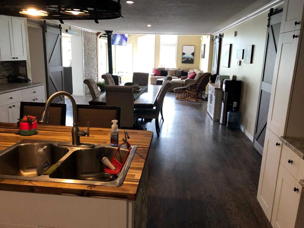 Rare opportunity to own a lakeside income property on 1.37 acres at Pine Lake, just 25 mins from Red Deer. This turnkey resort-style package includes a private 30-slip marina with boat launches, multiple leased RV lots, and a 2,600 sq ft walk-out home with two covered decks overlooking the lake. The upper level offers 2 bedrooms plus den, master suite, kitchen, and fenced yard with hot tub. A fully developed side suite provides rental income, while the partially finished walk-out level offers potential for ...