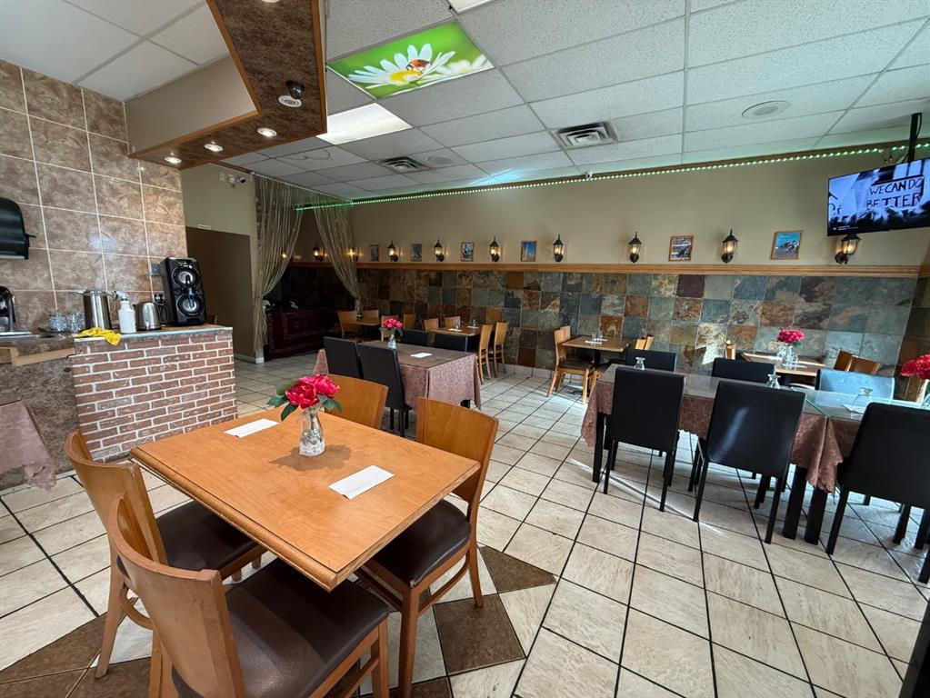 Turn-key Persian restaurant available in the community of Meridian (Southeast Calgary). Features include 12 ft canopy, walk-in cooler, and walk-in freezer. Space offers a dine-in area and comes fully equipped with all essential kitchen and restaurant equipment. With landlord approval, the concept can be changed to other cuisines. Ideal opportunity for owner-operators or investors seeking a ready-to-go restaurant space. LEASE WRITTEN ABOVE IS INCLUDING OPERATING COSTS.