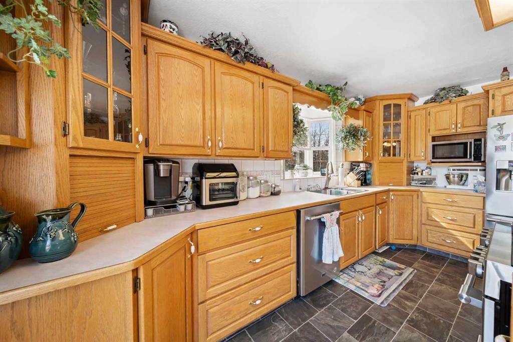 WELCOME to a peaceful country living just 5 miles east of Sundre in beautiful Mountain View County. Nestled in 1.1 acres in the quiet community of Westward Ho, this 1925 sf bilevel with 1100 sf developed basement offers space, comfort, and the charm of country life. Step inside to a bright, open concept main floor designed for everyday living and entertaining. The spacious kitchen is truly a chef's dream, featuring warm oak cabinetry, a large island with gas stove, and plenty of work space for preparing me...