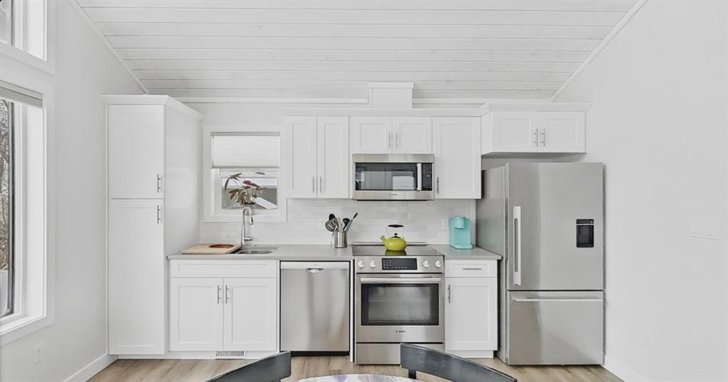 If you’re going to be on Gull Lake, this is the view you want. The sunsets stretch wide across the water, filling the home and wraparound deck with warm evening light. It’s just as impressive in the middle of summer as it is on a still winter night, and it never really gets old. Built for those ready to step away from oversized homes and into something more intentional, this Ready to Move (RTM) home delivers a smart, refined layout with vaulted ceilings, two bedrooms, and a full bath. The kitchen is designe...