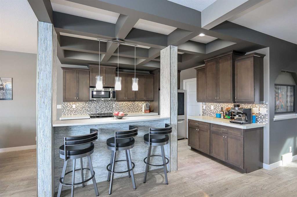 FULLY DEVELOPED 4 BEDROOM + OFFICE, 4 BATHROOM 2-STOREY ~ WALKOUT BASEMENT ~ BACKING ONTO A PARK AND GREEN SPACE ~ HEATED GARAGE ~ Great features include; Central air conditioning, operational in-floor heat, built-in’s ~ Covered front entry welcomes you and leads to a 2-storey foyer with tile floors, coffered ceilings, a built in bench and a large walk-in closet ~ Open concept main floor layout complemented by large windows that fill the space with natural light ~ The living room has a built in bench and te...