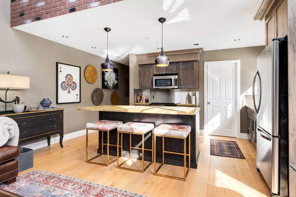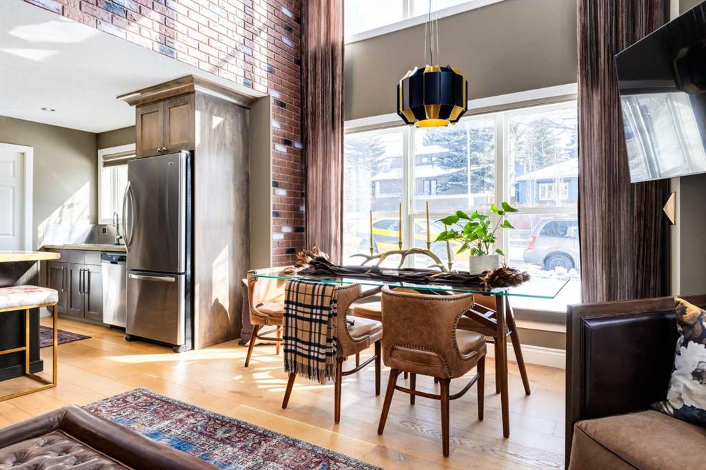 Welcome to this unique loft style residence in the heart of South Calgary, just steps from the vibrant Marda Loop district. This beautifully designed end unit offers a rare two storey living space with dramatic open to above living and dining areas, creating an airy and light filled home. Large windows on two sides allow natural light to pour in throughout the day while enhancing the open concept design. The main level features a spacious kitchen overlooking the living and dining areas, complete with custo...