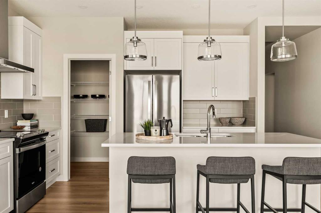 An incredible opportunity awaits in this brand new move-in ready Walkout Bungalow in the heart of Crossfield! Offering 2 living areas, 4 bedrooms, 2.5 bathrooms and nearly 2,200 square feet of developed space over two levels + an oversized double attached garage, this home is perfect for those looking to downsize without compromise or for a family! The bright and open main living area features a central kitchen that overlooks both living and dining spaces - making it the perfect space for entertaining. The ...