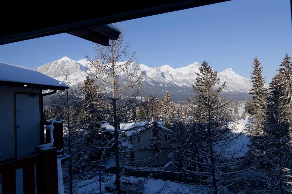 Enjoy breathtaking mountain views from the large private balcony of this spacious top floor 3 bedroom , 1 bathroom home. Thoughtfully designed with comfortable living all on one floor, this unit features in-suite laundry and upgraded appliances for added convenience. The oversized heated storage area provides exceptional space for seasonal items and extras. Includes 2 assigned parking stalls (one covered). A fantastic opportunity offering space, functionality, and incredible views all in one package.