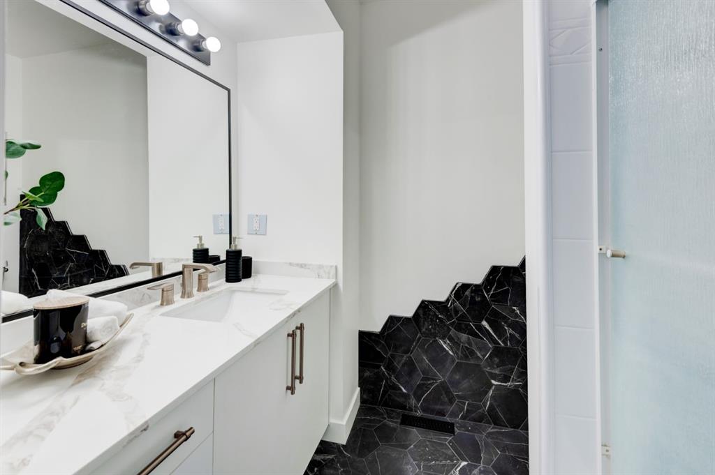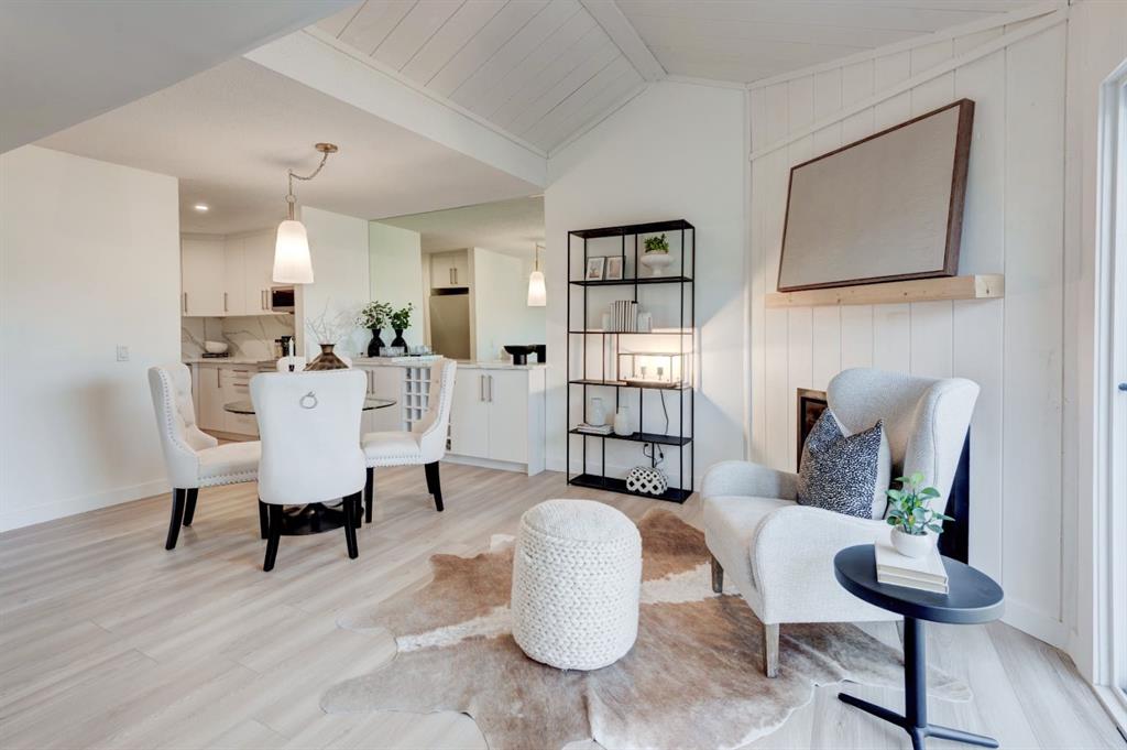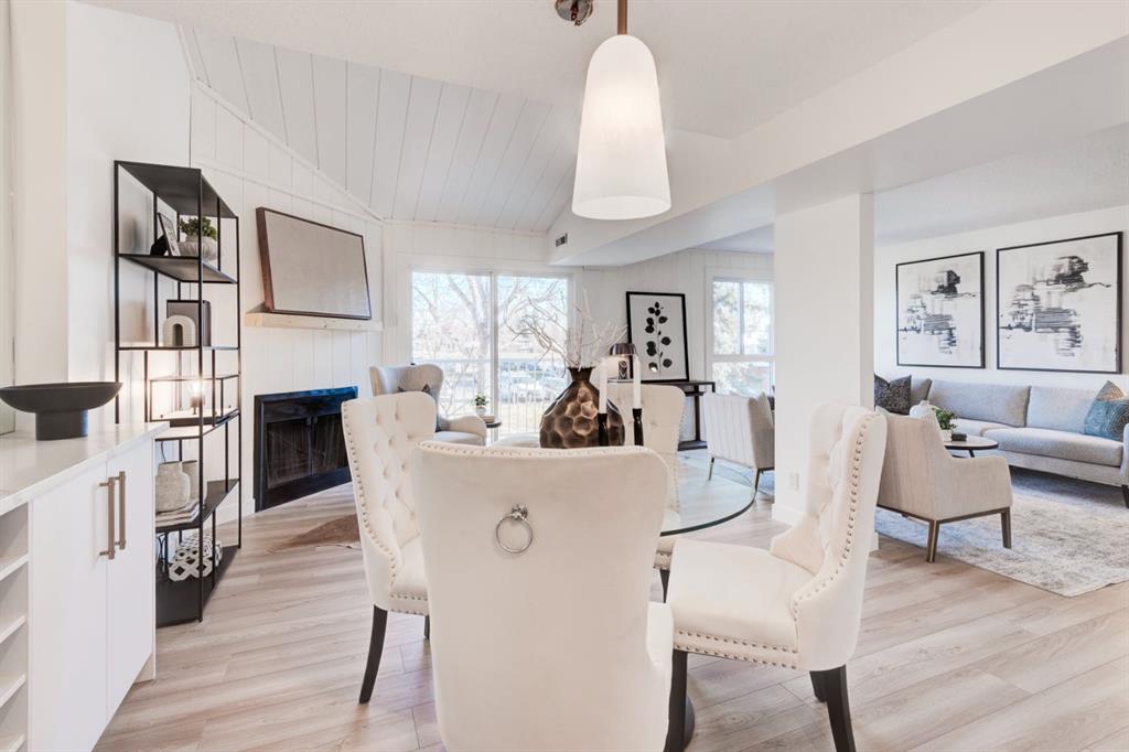 This stunning, exquisitely, expertly, renovated 1202 sq. ft. townhouse in the sought-after community of Canyon Meadows blends modern elegance with functional design. The bright, open-concept main floor showcases new wide-plank flooring, a designer kitchen with quartz countertops, a full-height quartz-inspired backsplash, gold accents, and a custom built-in nook with wine storage and extra cabinetry. Step out from the kitchen to your private deck, perfect for morning coffee or evening relaxation. Convenient...