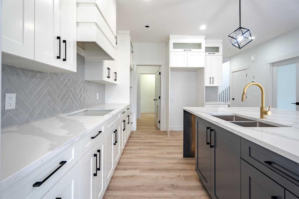Quick Possession and Brand New with Triple Garage on a spacious lot with 51' frontage and 120' deep. Quick possession is available, and a Fall Special allows buyers to inquire about discount pricing to add a complete basement development. 2,372 sq.ft. two story with attached triple garage (28' x 23') and side access walk-up basement. Bright, open plan with spacious main level dining nook, kitchen with island and walk-through pantry (wood shelving) to spacious mud room (wood bench + shelves), family room ...