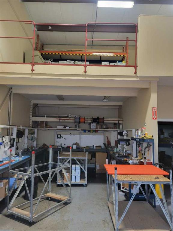 Here is a unique small condo bay, zoned I-G in a great location just off Barlow Tr SE. The main floor is 1053 sq ft with a 640 sq ft mezzanine. 20 ft ceilings, 12 ft height x 10ft Over head drive-in door, three assigned parking stalls out front, nice glassed in office and low condo fees complete this wonderful unit.
