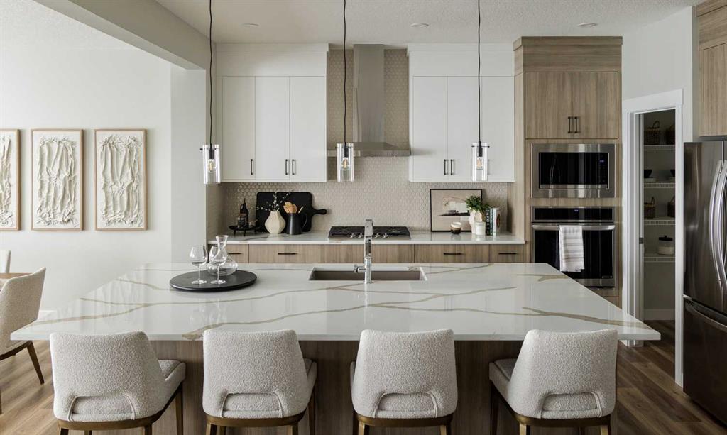 This quick-possession front-drive home offers a well-balanced layout with upgraded finishes and strong everyday functionality in Glacier Ridge. Featuring 2,284 sq.ft., 3 bedrooms, and 2.5 bathrooms, the main floor is finished with 9’ ceilings, luxury vinyl plank flooring, a gourmet kitchen with quartz countertops, stainless steel appliances including a gas cooktop and built-in wall oven, a flush eating bar, and a walk-in pantry. The dining area and great room are bright and open, highlighted by an electric ...