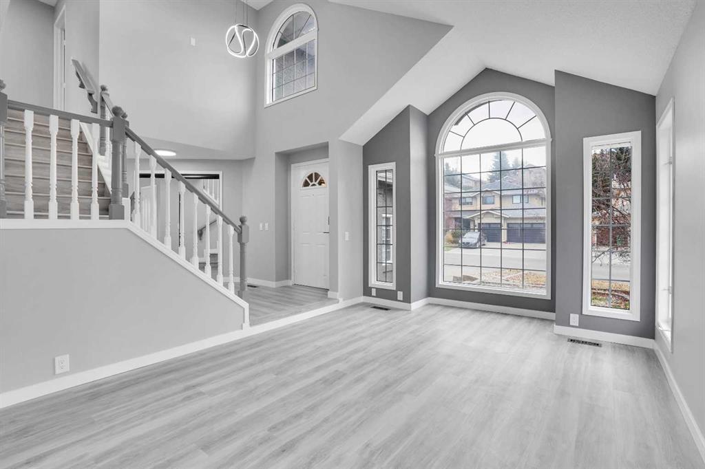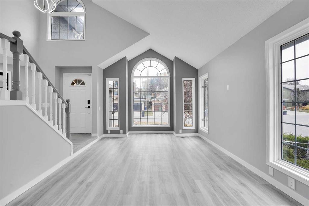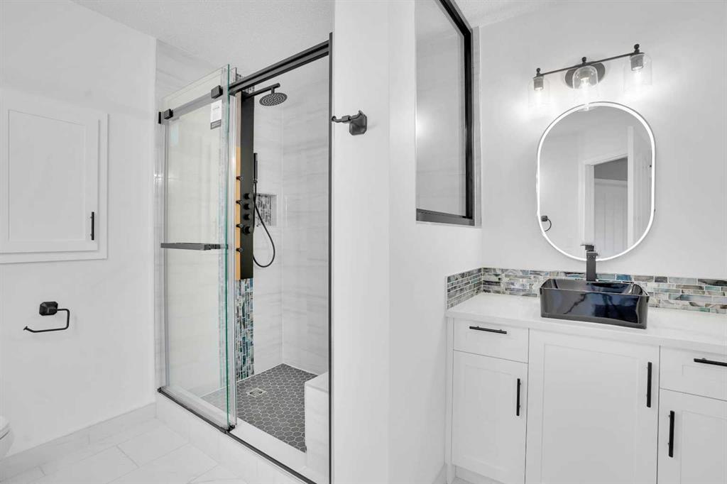 Honey Stop the Car!!! This beautifully updated 2 storey home in Mckenzie lake, SE Calgary has a Walkout Basement and mountain views! Upon Entering the home, you are greeted with vaulted ceilings and a modern paint palate. New vinyl plank flooring and custom tile adorn the main and second floors and all the light fixtures throughout have been updated. The kitchen has been completely redone with quartz countertops, custom backsplash, all new appliances, new cabinets, Undermount lighting and adjustable led cei...