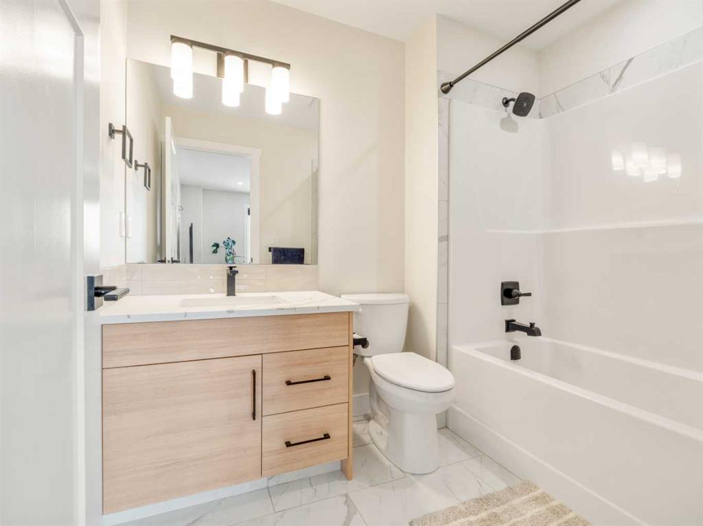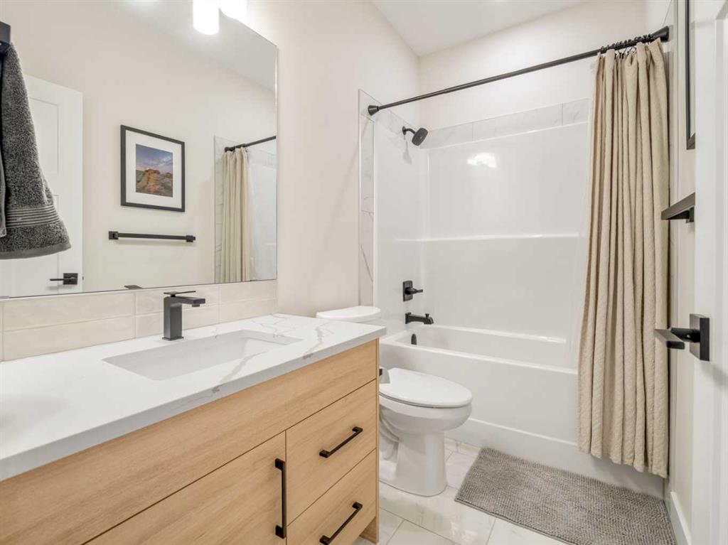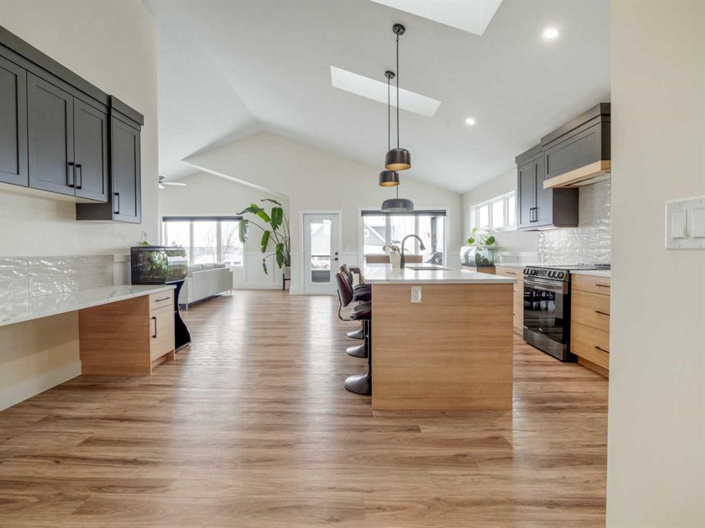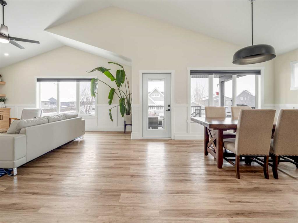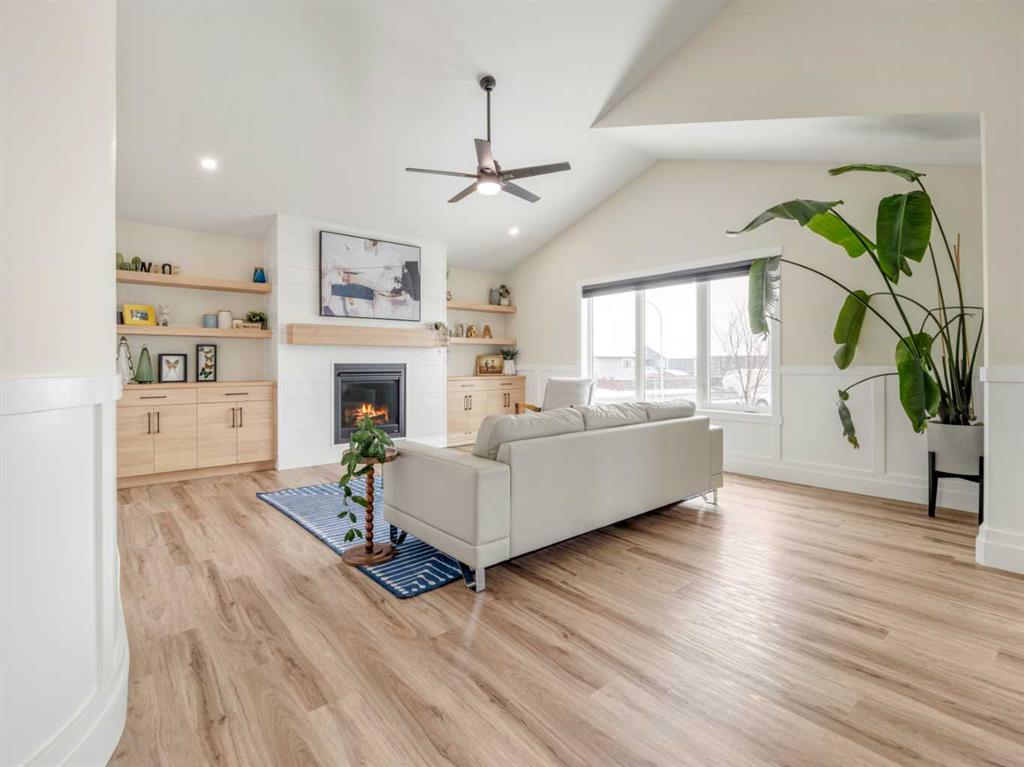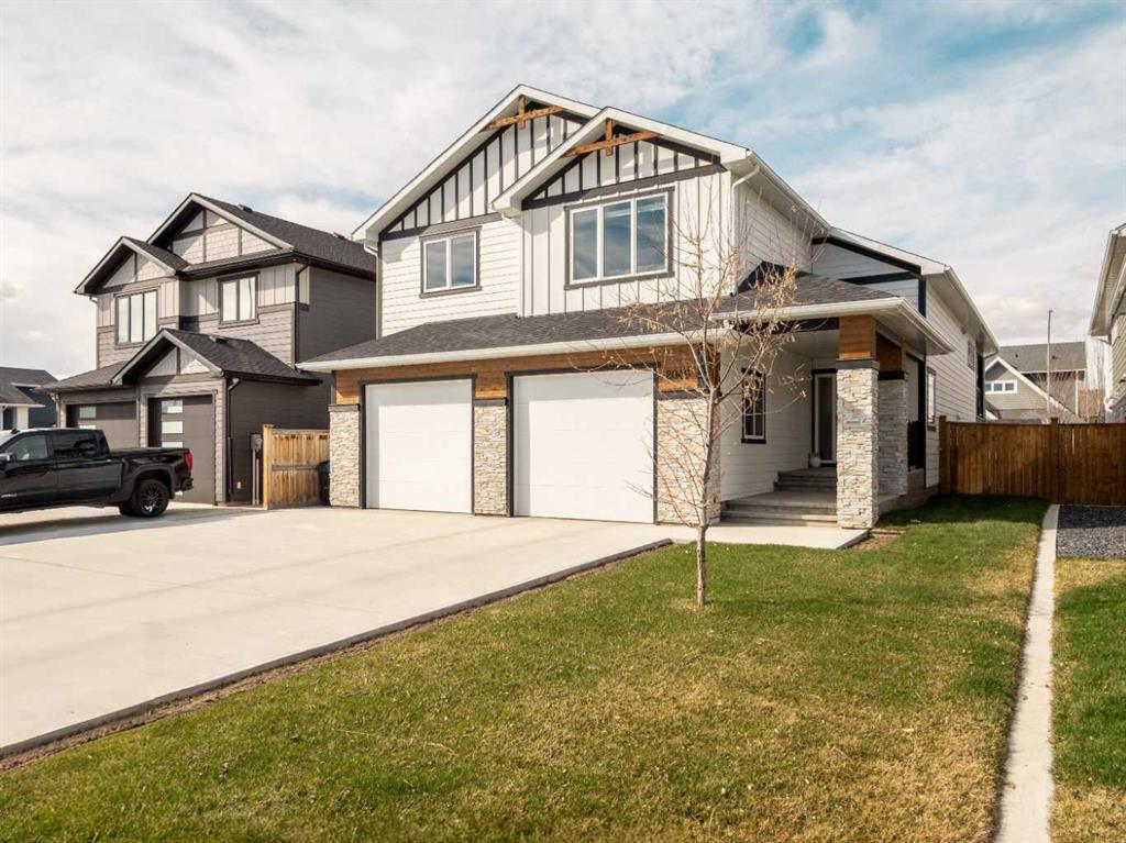 Incredible 2 year old large modified bi-level home in Cottonwood Estates originally built by Grizzly Ridge Developments! This 5 bed, 3.5 bath home has hardiplank exterior siding with stone accents, and a MASSIVE concrete front driveway that fits 6 vehicles! Heated garage is also a 26x29 and easily fits 2 more vehicles. Large welcoming entry. A half staircase to main floor showcases a large vaulted ceiling and vinyl plank flooring. Kitchen has upper grey upper cabinets, and lower lighter wood pattern. Kitche...