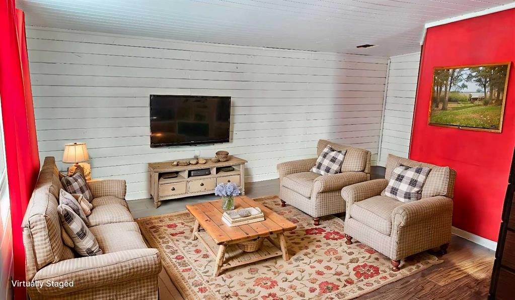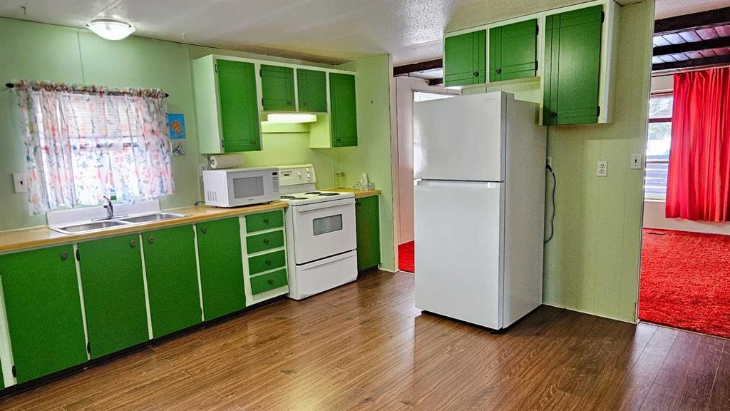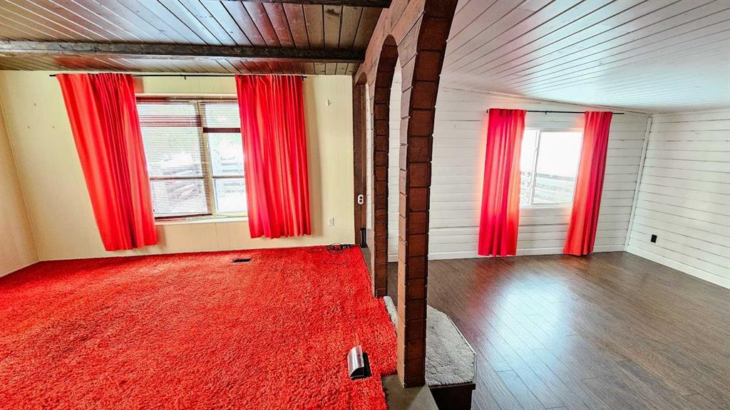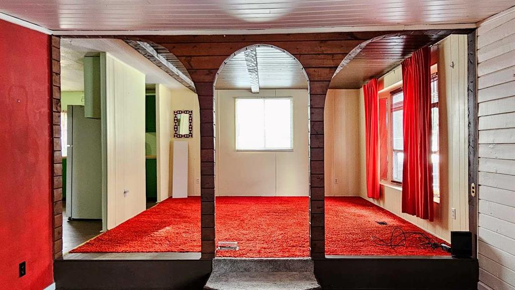Welcome to This Far-Out Sundre Pad! Groove on over to the NW corner of Sundre, where this throwback beauty is serving up serious 70’s vibes with room to stretch out & live large. This older mobile comes with two generous additions, giving you over 1,100 sq ft of living space—because even disco legends need space to dance. Inside, you’ll find two living rooms, perfect for entertaining, lounging, or setting up a retro rec room. One living room features rich red shag carpet that’s pure vintage cool, & the prim...
