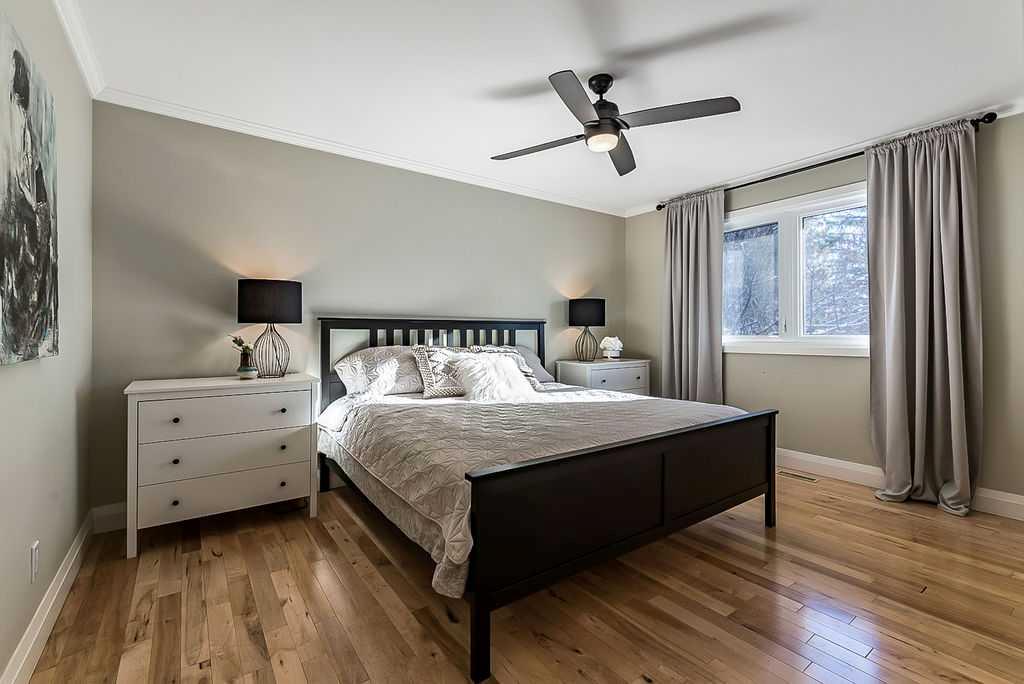 ** Open House Sat 1-3 ** AMAZING 1550SQ.FT. BUNGALOW with soaring VAULTED CEILING in beautiful Suntree, across from fountain/pond on a huge NEARLY QUARTER ACRE LOT! Numerous updates over the years, including new windows (2018), new furnace (2018), new hot water tank and water softener (2018), new shingles (2016), ensuite bathroom (2012), and kitchen & flooring (2004-2012). OPEN CONCEPT floor plan features large kitchen with maple cabinetry & island, dining room, den with large windows looking over communit...