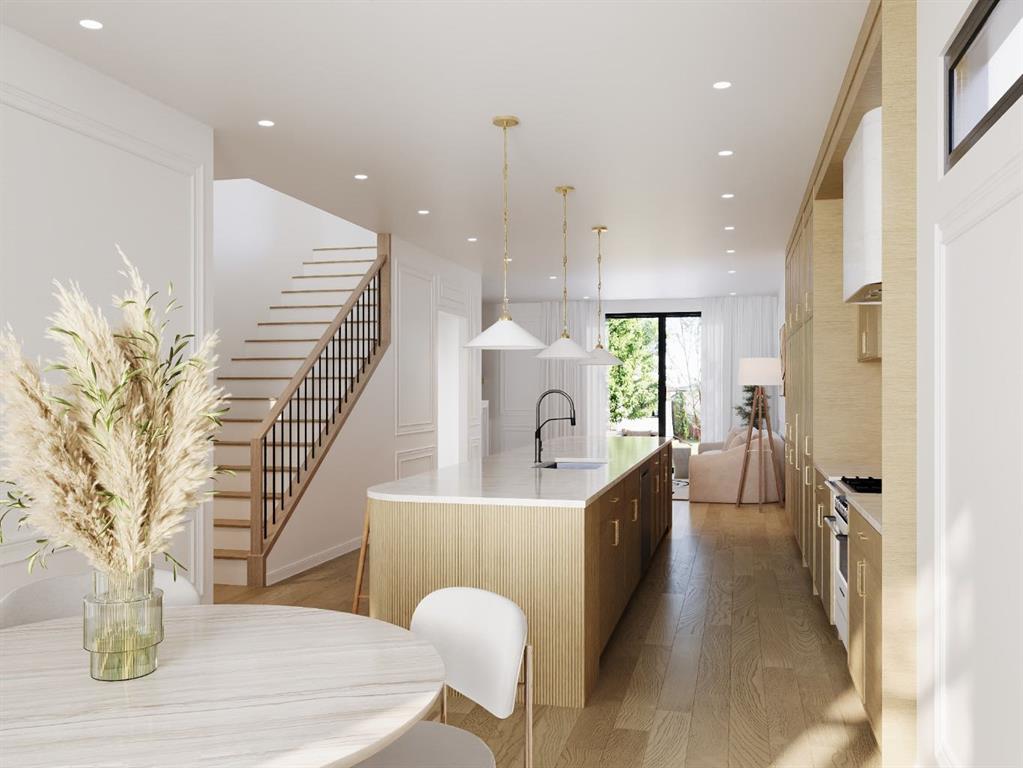 Exclusive pre-sale opportunity in the highly sought-after community of Richmond. This stunning residence, designed by JTA Designs, offers over 2,400 square feet of thoughtfully planned living space. Upon entry, a grand foyer welcomes you into the main level, featuring soaring 11-foot ceilings and elegant hardwood floors throughout. The formal dining area, accented with custom wainscoting, is filled with natural light from expansive windows. The designer kitchen boasts a striking 14-foot fluted curved island...