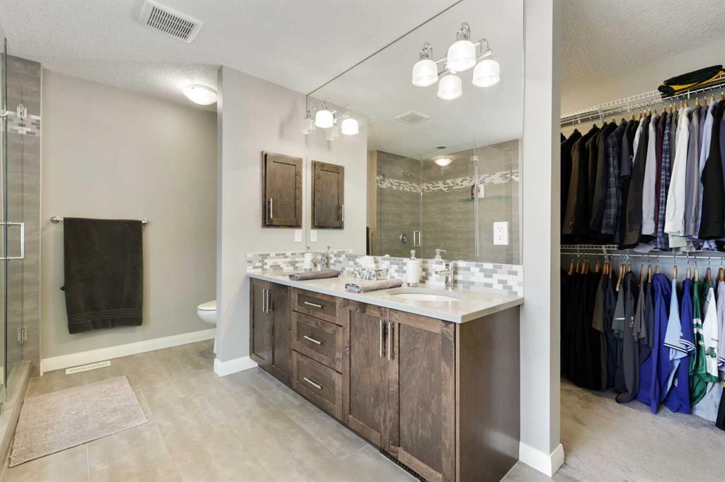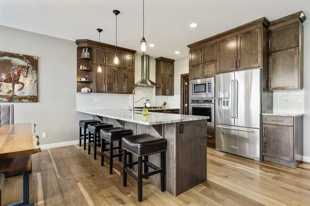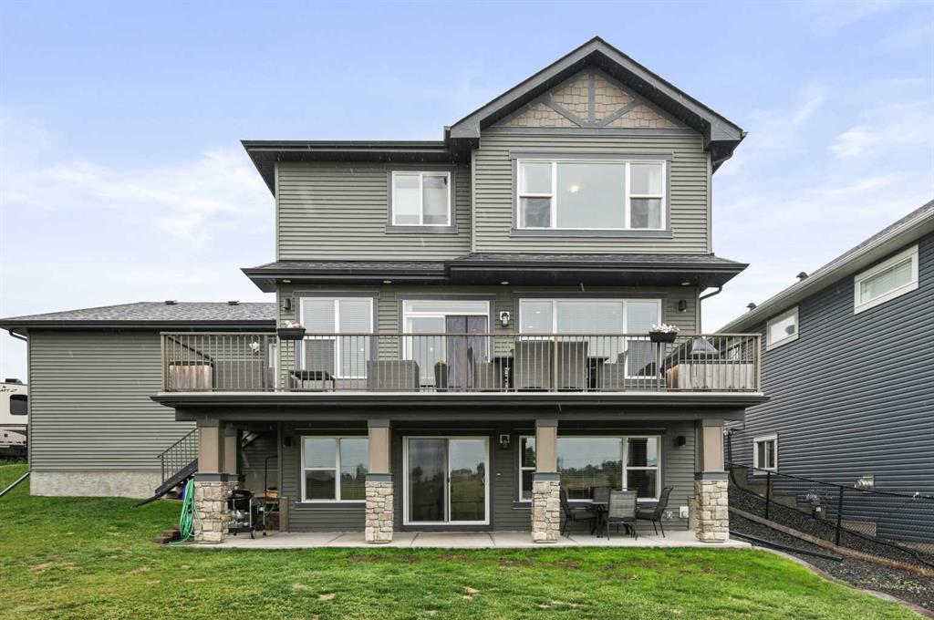 Location, luxury and lifestyle in this fully finished 2 story walkout backing onto hole #3 of the Track Golf Course in beautiful Boulder Creek Estates of Langdon. This exceptional home features water views, almost 2,800 sq ft of living space, central air conditioning and an incredible 5 car heated garage. A designated home office just off the front entrance is the perfect place to work or study away from the main living space. The main living area is a spacious open concept design with an entire wall of win...