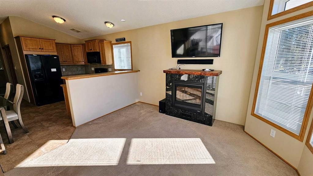 Step into the best of golf course living at this impeccably maintained year-round Park Model home, nestled on a beautifully landscaped & oversized corner lot (0.09 acres) in the prestigious Coyote Creek Golf & RV Resort near Sundre. This one-bedroom, one-bathroom, 586 sq ft home is designed for comfort, function, & relaxation — with year-round appeal. Inside, enjoy the open-concept layout flooded with natural light from large south-facing windows. The spacious kitchen boasts ample counter space, pantry stor...