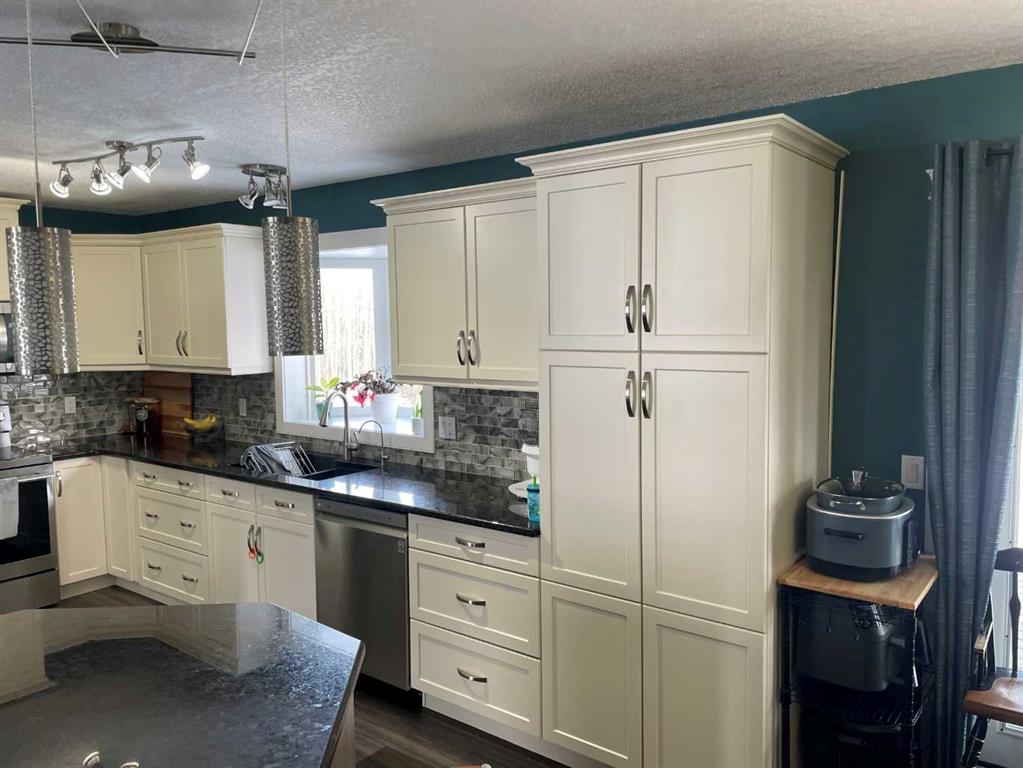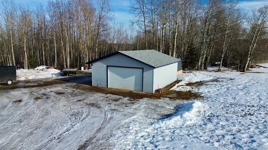 Welcome to this beautiful spacious walk-out bungalow located close to Whitecourt with pavement right to your driveway. featuring 6 spacious bedrooms and 3 1/2 bathrooms. The entire home is finished and ready to move into. Features include a gorgeous kitchen with white cabinets and granite counter tops, lots of space in the dining area. Laminate flooring and bright colors cover the main level. there is main floor laundry and a corner jetted tub in the ensuite. This property offers 2 heated garages an attach...