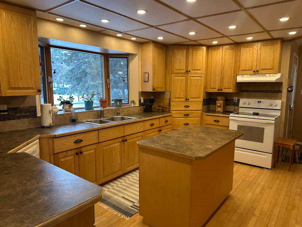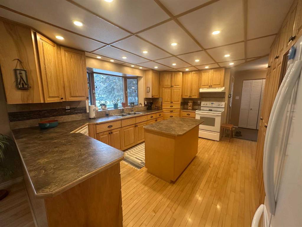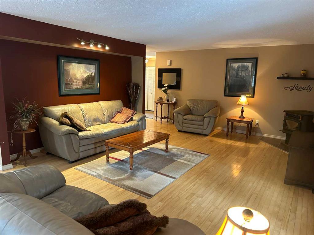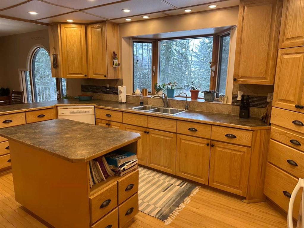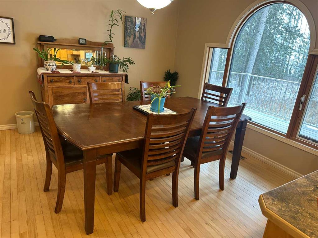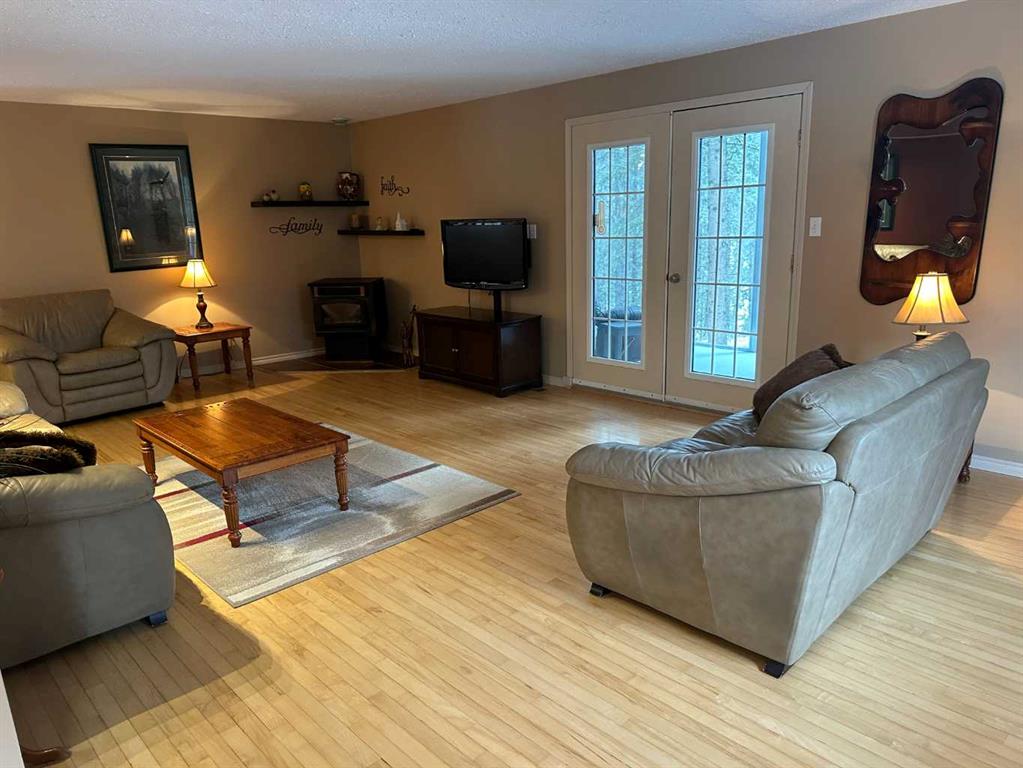 The perfect combination….. is the best description of this acreage that is nestled amongst the trees, on pavement and bordering Prairie Creek. You are immediately greeted with an open foyer and 3-piece bath/laundry facility for your convenience. This family friendly home boasts an exceptional kitchen with plenty of countertop preparation space and kitchen cabinetry. The dining room shares an area in which you can entertain large family gatherings along with the spacious main floor living room with a corne...