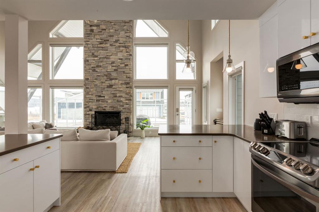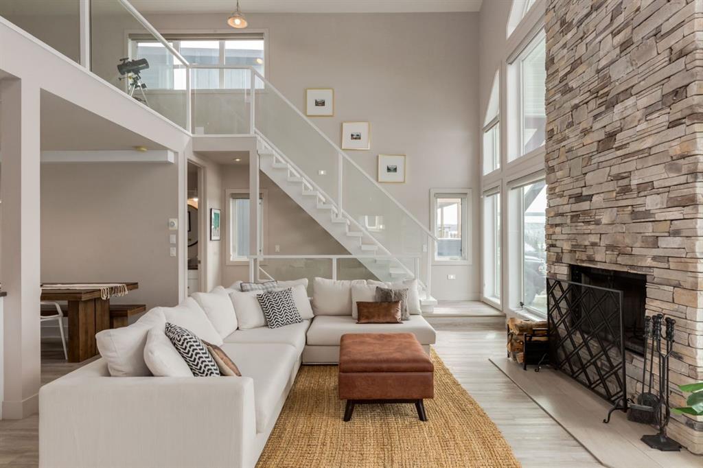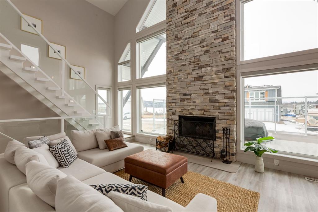 Modern architecture meets effortless lake living in this beautifully designed open-concept home. Soaring vaulted ceilings and a spacious great room with a cozy wood-burning fireplace create an inviting atmosphere, while durable laminate flooring flows throughout. The stylish kitchen opens to a generous dining area and sun-filled enclosed porch adding extra space for entertaining. A 4-piece bath completes the main level. Upstairs, escape to your private retreat featuring a massive bedroom with stunning mou...