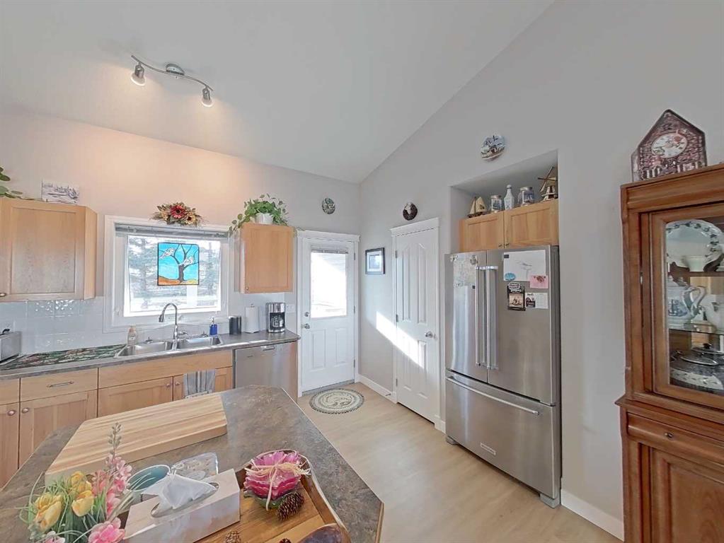 *Original Owner* *10/10 Curb Appeal!! Enter through the Archway, past the Apple trees, to the Covered Front Deck and into this Fully Finished Bi-Level with 3 Full bathrooms and 4 Bedrooms(total). This very Bright & Open plan welcomes you with lofty Vaulted Ceilings. The main floor has 2 bedrooms, 2 full bathrooms and a main-floor laundry. Upon entering you will discover all NEW VINYL PLANK FLOORING & BASEBOARDS(December 2025)on the main level, a good-sized living and dining room combo plus a spacious k...