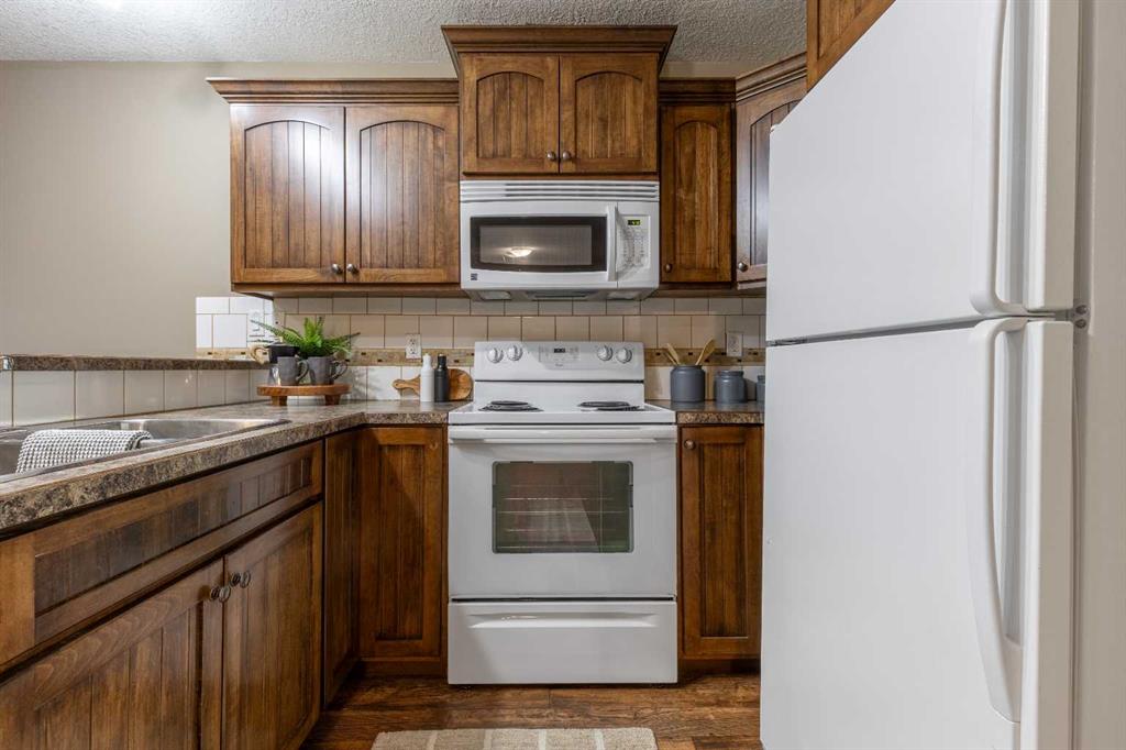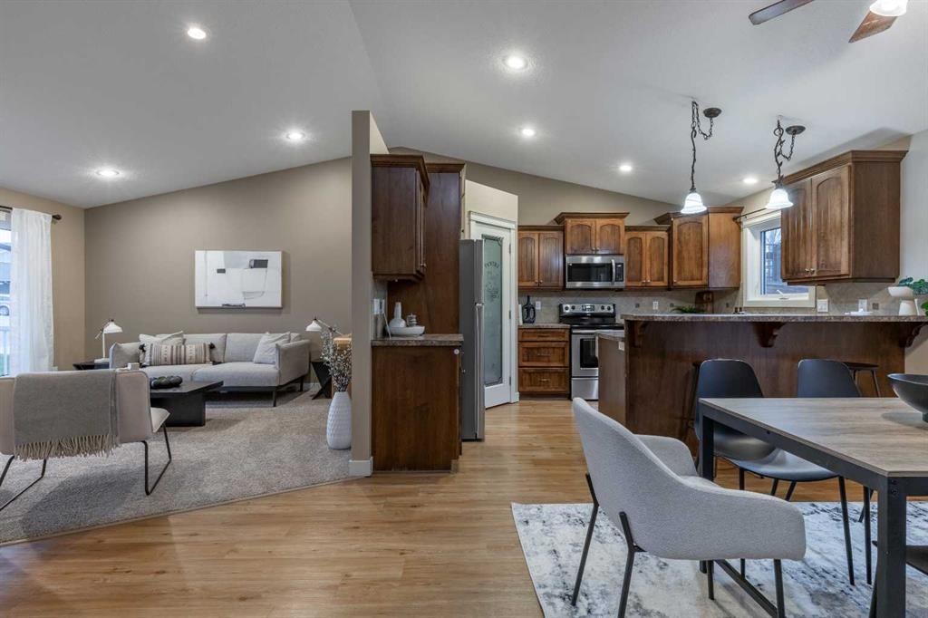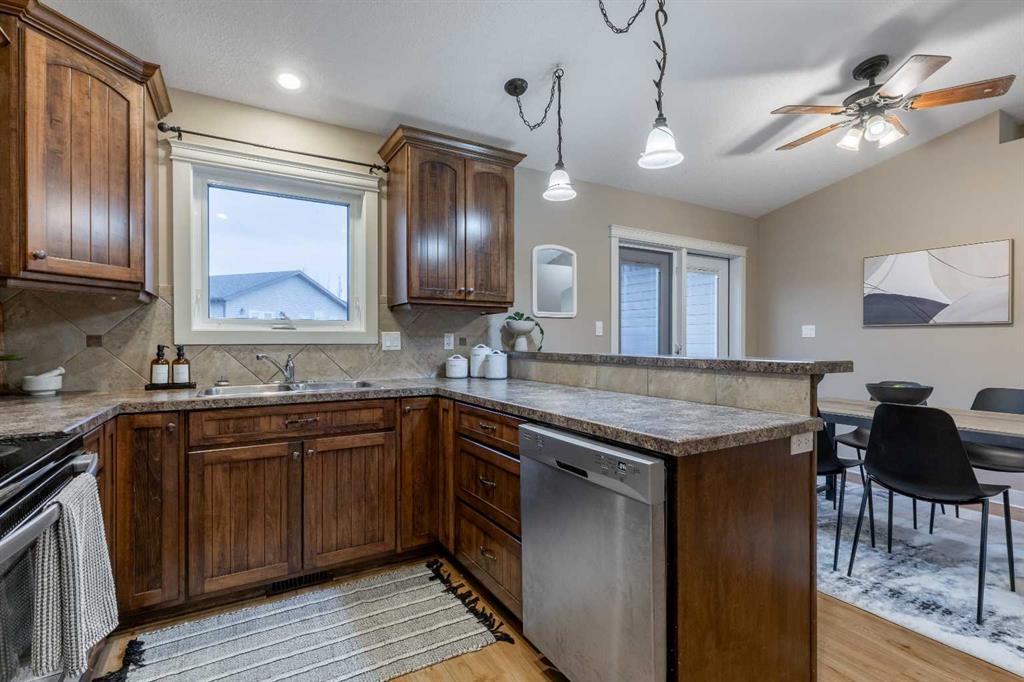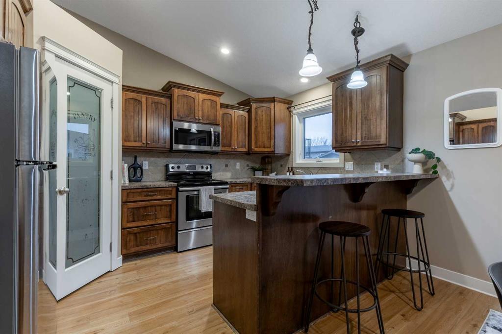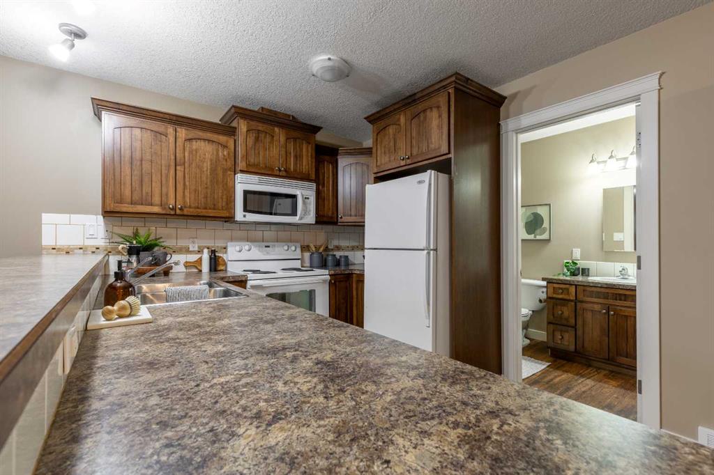 This illegally suited bi-level property features two beautiful units with their own appliances and an ideal location near all Coalhurst amenities! Step past the attached double garage and over the front porch and you'll enter into a large bright living room. Further in, the kitchen features a breakfast bar, dining area, and corner pantry, sure to be a hit with the chef in your family. Two bedrooms can be found down the hall with a full four-piece bath nearby. The primary bedroom at the rear of the main-floo...