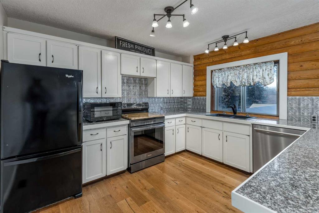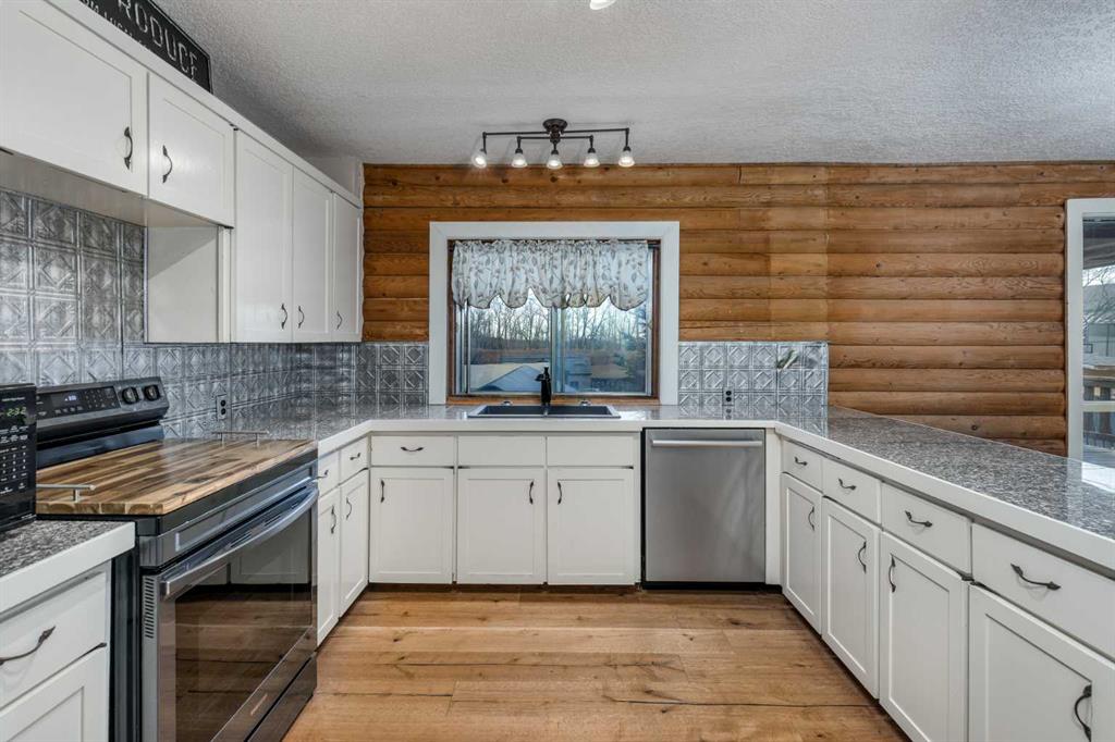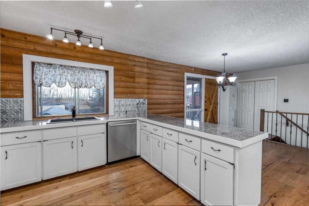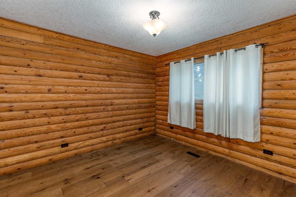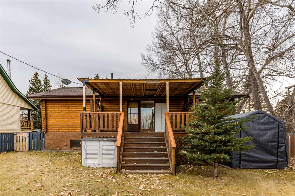 Once you view this charming log home you will fall in love. Situated on a beautifully treed mature street only one block from the School. This awesome raised bungalow offers over 1882 sq ft of developed living space across 2 levels perfectly blending comfort and functionality. The main floor layout includes a generous living room with cozy gas stove. A well appointed kitchen with ample cabinetry, granite tiled counter tops, and 4 appliances. Big dining area ideal for your family meals. You'll find 2 bedroom...