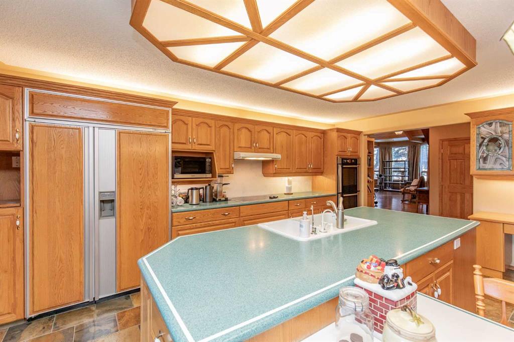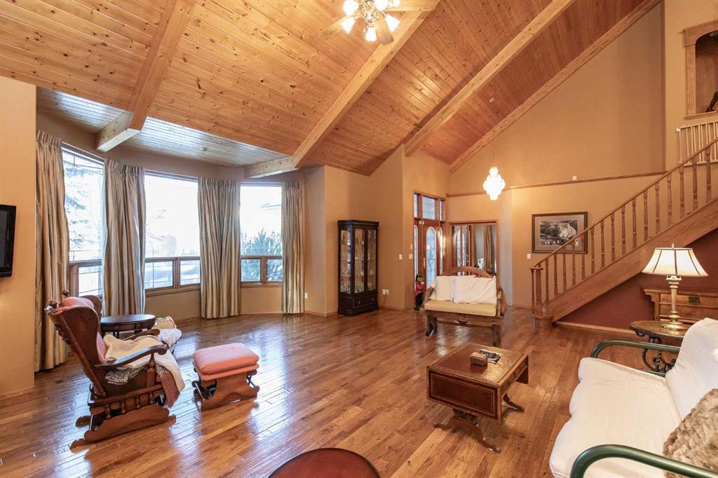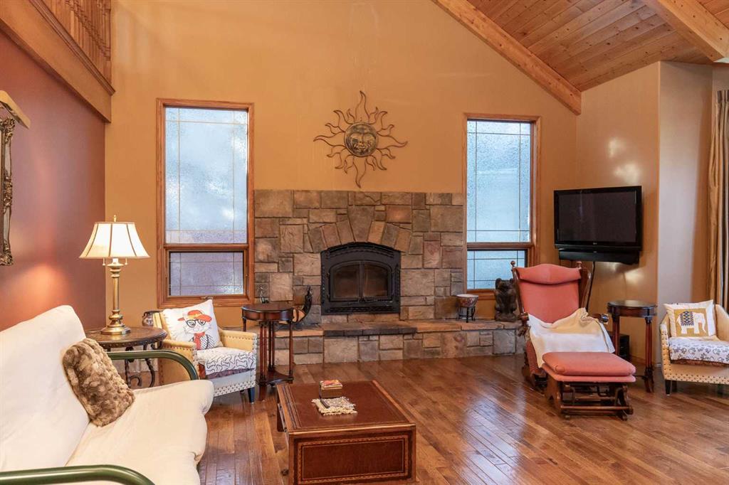 Welcome to this exceptional custom-built 4 bedroom, 3 bathroom executive home offering over 4,200 sq ft of beautifully developed living space. Ideally situated on a large, treed lot siding onto a scenic walking path, this property combines privacy, space, and thoughtful design. A soaring pine-lined vaulted ceiling creates a grand first impression as you enter the wheelchair-accessible main floor, featuring no-step entry and extra-wide hallways. The formal living room showcases a striking stone-faced firepl...