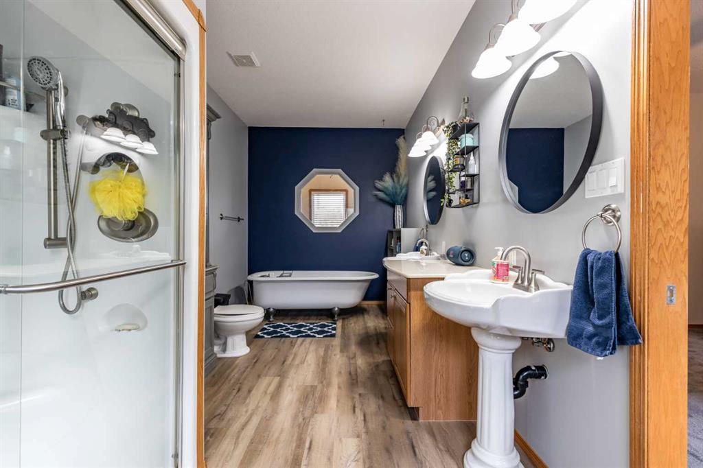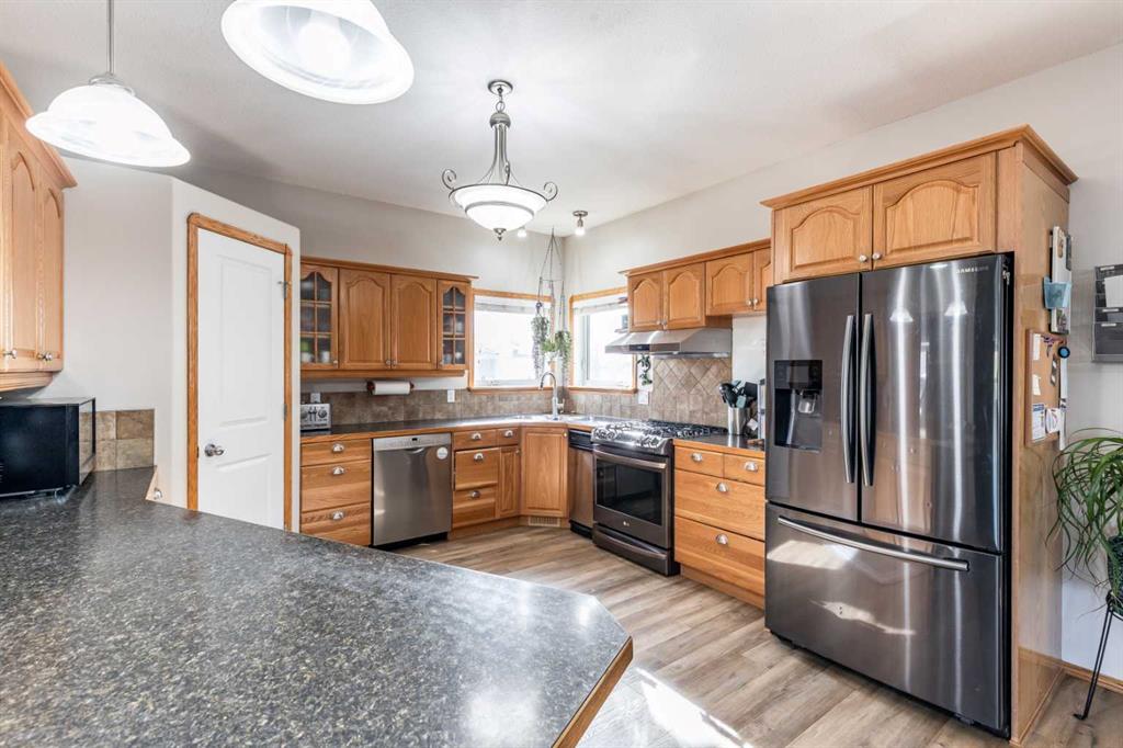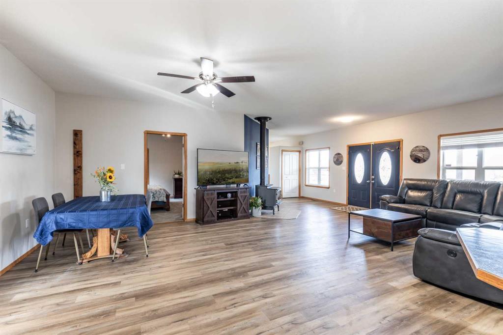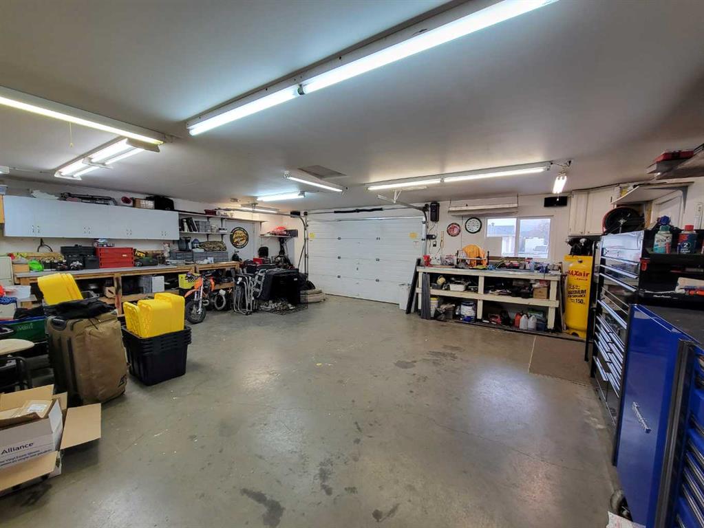 This stunning 1,795 SqFt bungalow offers an abundance of space, comfort, and incredible functionality - both inside and out. Situated on a spacious .53-acre lot, the property is a dream for hobbyists or anyone needing serious storage, featuring not one, not two, but three heated garages. The attached garage measures 23'8" x 25'6" with 10' ceilings, a radiant heater, and a large storage room, while the two detached garages (24'9" x 27'4" and 26'11" x 24'10") both offer 220V power, 8' ceilings, gas heaters, a...