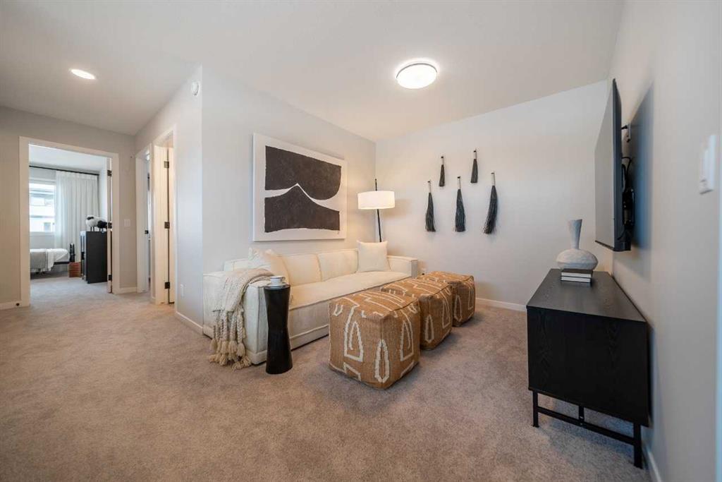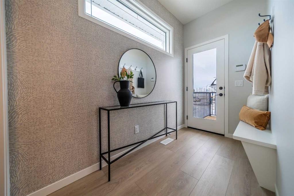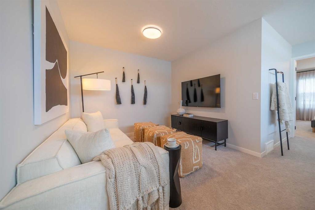 Tentative possession of July 2026! Bright & open semi-detached home by Cedarglen Homes. 1,722 sq. Ft of living space, including 3 bedrooms, 2.5 bathrooms, main floor flex room, bonus room, upper laundry, & mud room w/ bench & coat hooks. Kitchen features quartz countertops, full height cabinets & tile backsplash, chimney hood fan built-in microwave layout, gas line, & waterline. Full height tile in showers. Side entrance, rough ins, 2 windows, & 8'9" ceiling height in basement. James Hardie fiber cement pan...