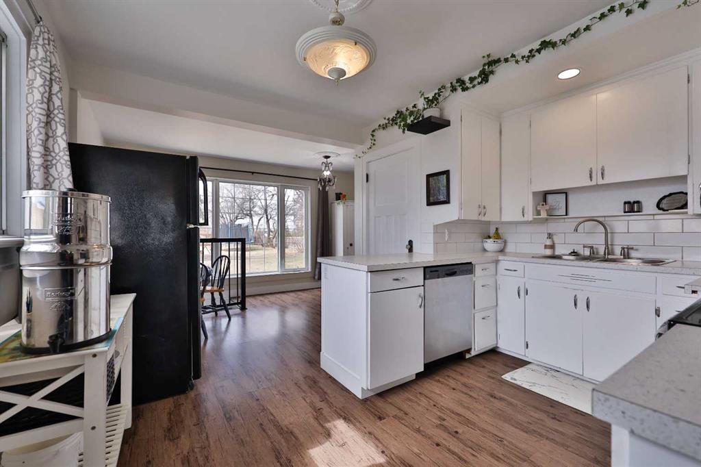 Tucked away in the heart of Raymond, Alberta, this inviting one-and-a-half-story home exudes both charm and modern comfort. Set on nearly half an acre with mature trees and a fenced yard, this home is a true family oasis! Inside, three spacious bedrooms and three bathrooms provide ample space, with two of those bathrooms being beautifully renovated adding a fresh touch. The main floor offers a cozy family room with a certified wood-burning stove and a formal dining area, ideal for entertaining. With vinyl p...