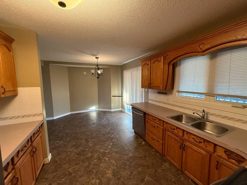 Great neighbourhood- close to schools, recreation center, shopping and restaurants. Bilevel home with a spacious living room with fireplace. Kitchen has plenty of oak cabinets. There are 2 bedrooms and a 4 piece main bathroom. Basement has a family room, bathroom, 2 bedrooms, laundry and mechanical room. Oversized double detached garage with workshop.