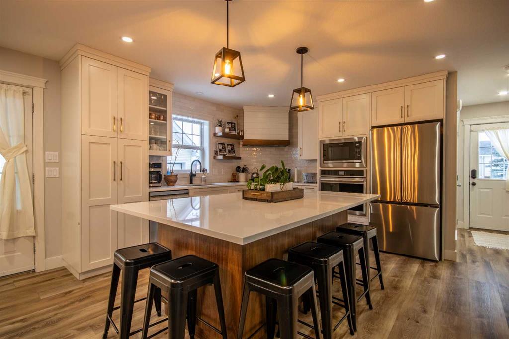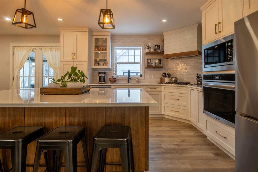 Charming, renovated home on a corner lot in a sought after Olds neighbourhood. Enjoy a private, beautifully landscaped yard with mature perennials, raised garden beds, and a paver stone deck designed for quiet outdoor living. Thoughtfully updated throughout with high end finishings, custom cabinetry, new flooring, and renovated bathrooms, this home blends classic character with modern comfort. The main floor features a renovated kitchen with custom cabinets, gas range, and large island, plus a cozy den wi...