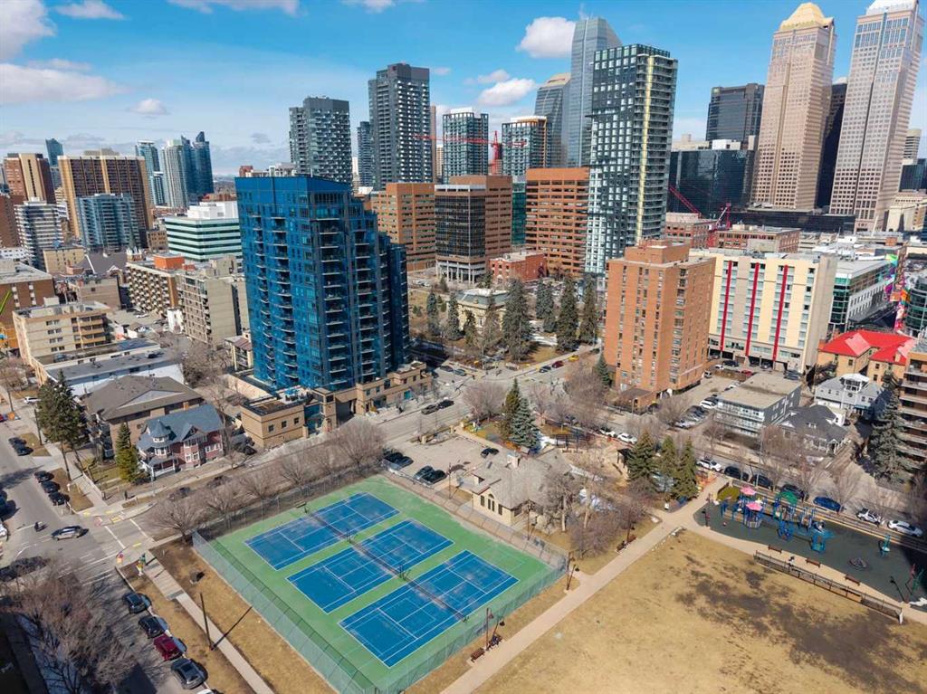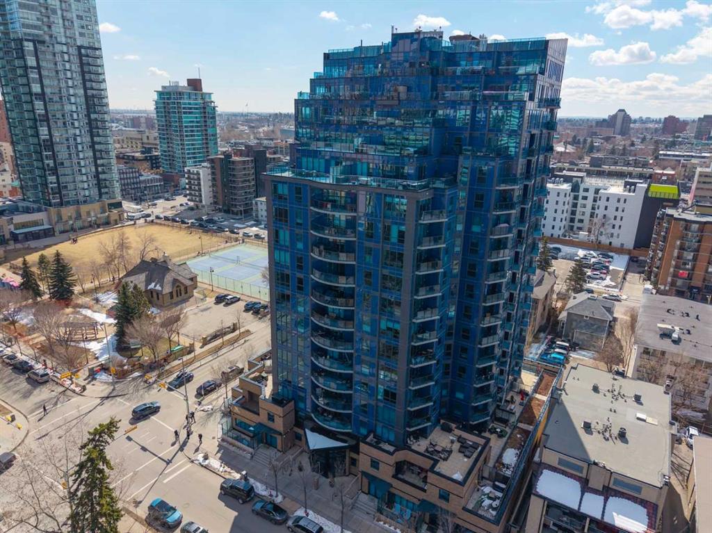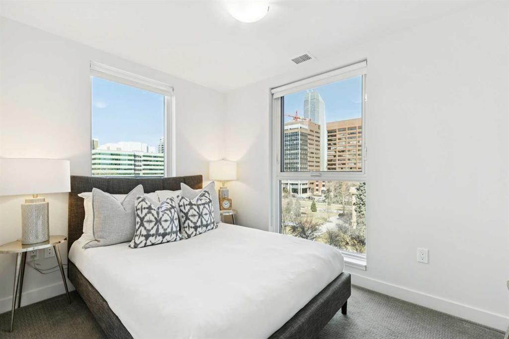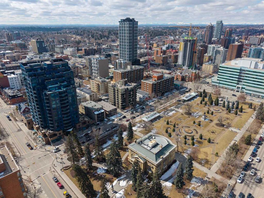 Welcome to The Park, one of Calgary's most sought-after addresses, perfectly positioned across from Central Memorial Park and Haultain Park, two designated historic sites that protect your views and guarantee the green space, natural light, and privacy you'll enjoy for years to come. This stunning 2-bedroom, 2-bathroom plus den condo on the 6th floor features floor-to-ceiling windows facing northwest, flooding the living room with natural light while framing spectacular views of the park and Calgary skyline...