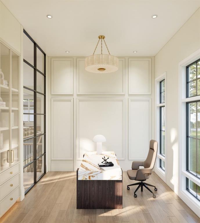 This exceptional custom bungalow located on a quiet corner lot offers over 4,400 square feet of total developed living space with 4 bedrooms, a rare attached triple tandem garage, a west facing backyard, and impressive architectural ceiling heights including 12-foot ceilings throughout the main level, 10-foot ceilings in the basement, and a front office. The home opens through a statement front foyer with designer lighting, wide plank hardwood flooring, and custom millwork detailing that continues throughou...