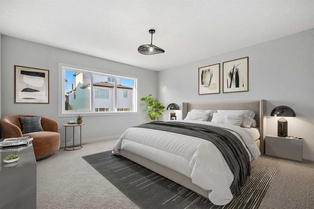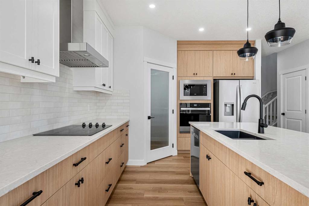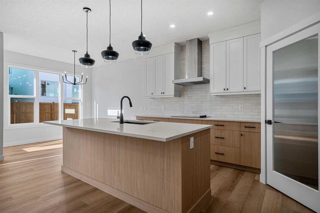 Set on a west-facing backyard homesite in the emerging community of Amblefield, this home showcases a thoughtful balance of design, functionality, and modern comfort. This beautifully appointed home is tailored for growing families, multi-generational living, or anyone seeking elevated style paired with everyday convenience. The main floor welcomes you with an open and versatile layout featuring a flex room and full bathroom, ideal for guests, extended family, or a home office. The kitchen is a true culina...