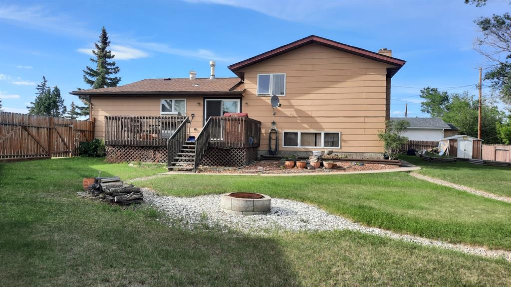 With a fully fenced Park like backyard. This Property offers a deck, fire pit, raised garden boxes, mature landscaping. Loads of off street parking including room for the RV and an attached heated garage with storage. Inside the Home spacious living room with natural light, formal dining and eat in kitchen. Upstairs 3 bedrooms 2 bathrooms, lower level has family room with wood burning fireplace, additional bedroom, bathroom and access to garage. Lowest level offers a Rec room, office or flex room and ut...