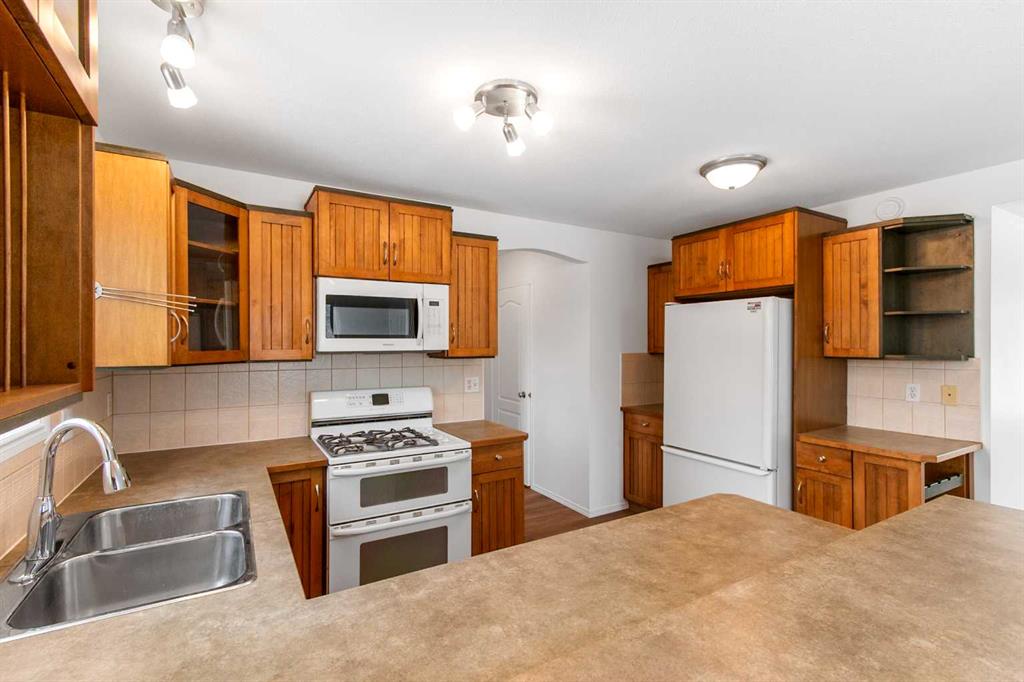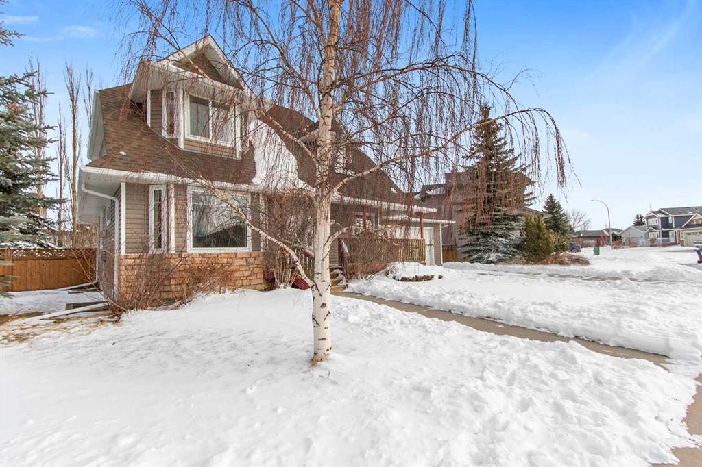 This Carstairs home was originally built as a show home and offers a thoughtful layout with tons of built in features, on a 0.35-acre lot bordered by mature trees. You will love the south facing covered front porch, no neighbors beside overlooking the beautiful GREENSPACE. Appreciate the FENCED YARD + covered rear DECK & PATIO area creating a PRIVATE SETTING that feels tucked away while still being part of a welcoming neighborhood. Built in 2002, the home is flooded with NATURAL SUNLIGHT & has been refreshe...
